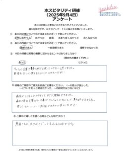受付や会計シーンを実際に行うことで、お互いの良い点や、さらに意識すればもっと素敵になるポイントを見つけ、共有することができました。