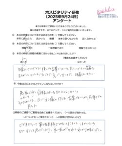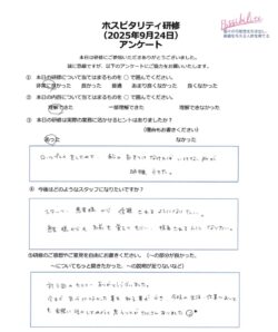 これまで研修でお伝えしてきたおもてなしの気持ちや言葉遣い、所作などを活かしていただき、今後もますます輝いていただきたいと思います。