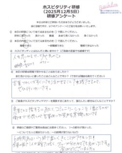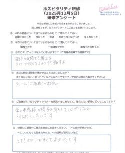 ホスピタリティについて全員で学ばれたことがなかったようですが、本当に初回?と思うほど、