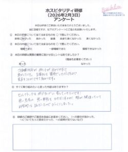 クリニックで起きそうな事例で練習しましたが、言い回しや表情、声のトーンをブラッシュアップできました。