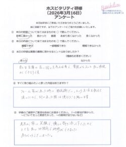 クリニックでの経験が長い方もいらっしゃっいますが、ご自身の応対を客観的に見るのは、初めてとのこと。